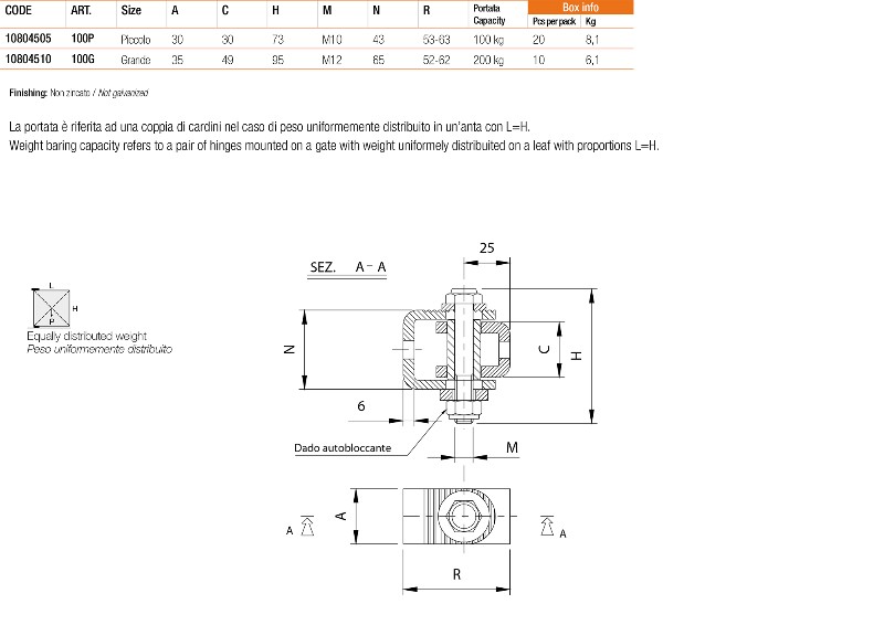 cardine con cavallotto 100p Prevista un'asola per la regolazione dell'anta • E' presente una zigrinatura per garantire un fissaggio più stabile