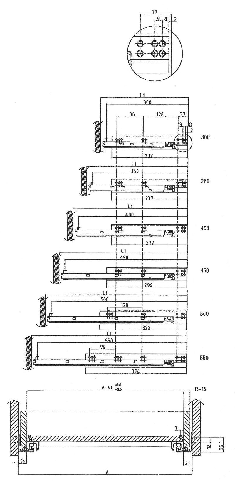 GUIDA ESTRAZIONE TOTALE SOFT-CLOSE 3 REGOLAZIONI MISURE CM 30;35;40,45;50,55
