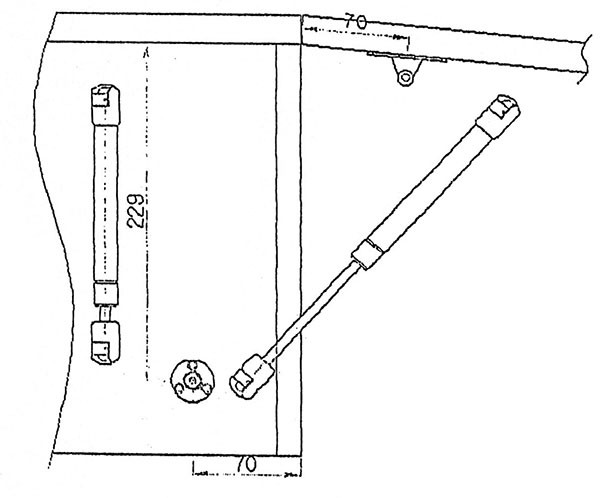 BRACCETTO A GAS PORTATA 10KGBraccetto a gas per apertura anta mobile verso l'alto. Modello specifico per ante e fianchi in legno, portata anta kg.10. Dimensioni: lunghezza totale mm.275